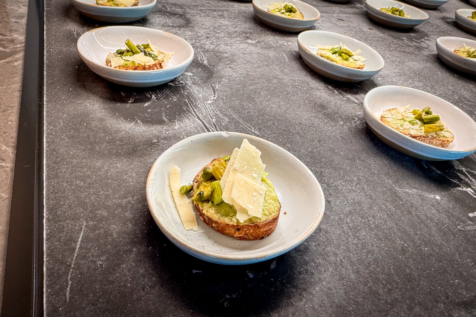 At the small-plates bar, chefs were replenishing the hot dishes from a kitchen behind one wall — including a premade fried egg and bacon sandwich, called the "red eye b.e.c."