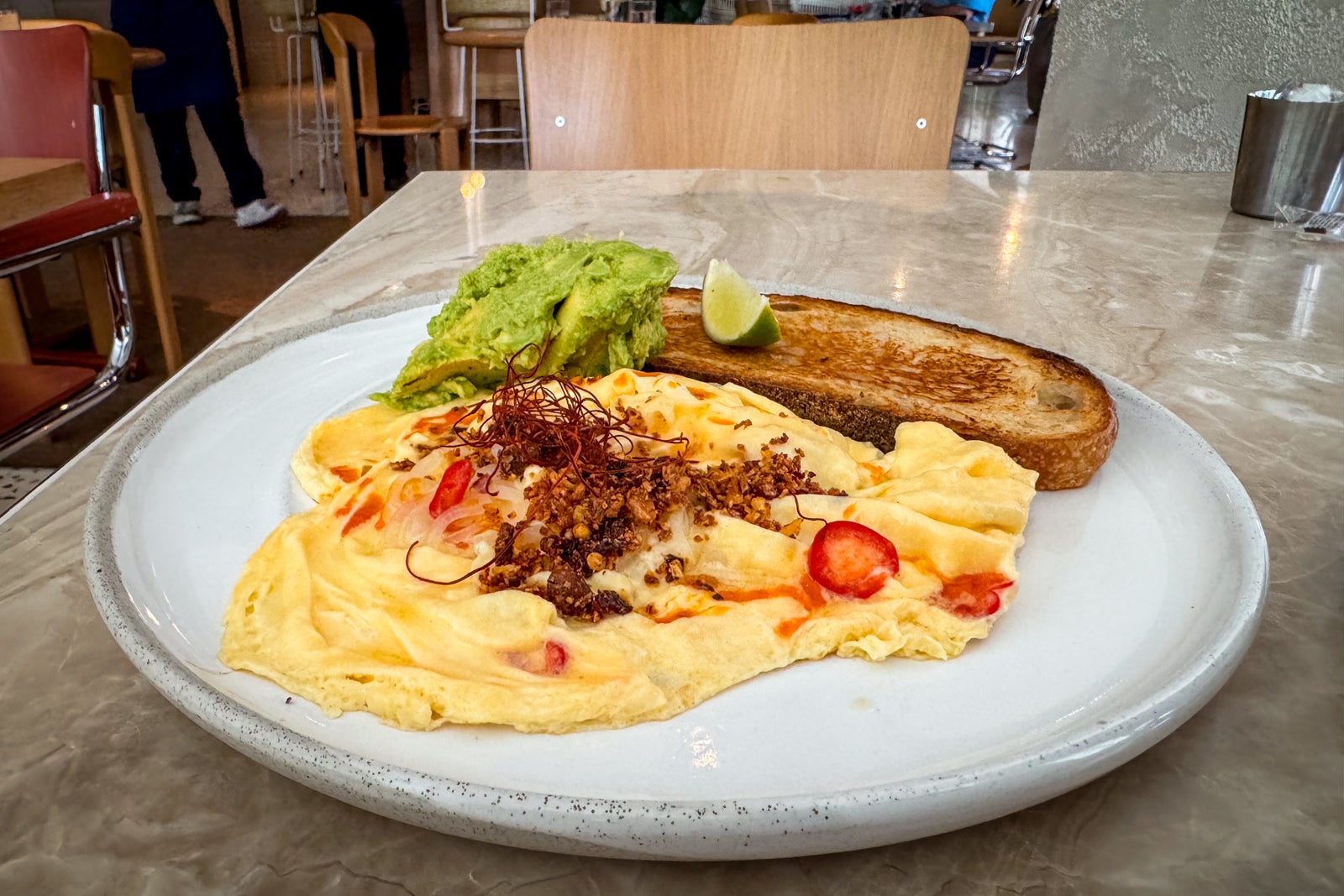 Breakfast was also served here and included specialties like chia pudding with apricot and macadamia nuts ($14) and scrambled eggs with chiles, pickled shallots and sourdough toast ($14). My rate, which included breakfast for a mere 9 Australian dollars ($6) more than the regular member rate, seemed well worth it when you considered that it included a hot beverage of choice, a selection of juices, a main dish and a side (I ordered avocado that would have cost $5 more).